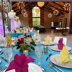 We can provide or custom match your linens with glassware, napkins, plates, silverware, placecards, serving pieces and unique florals to match your decor and budget.
