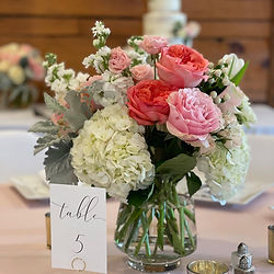 Custom event florals including centerpieces, bridal bouquets, bud vases